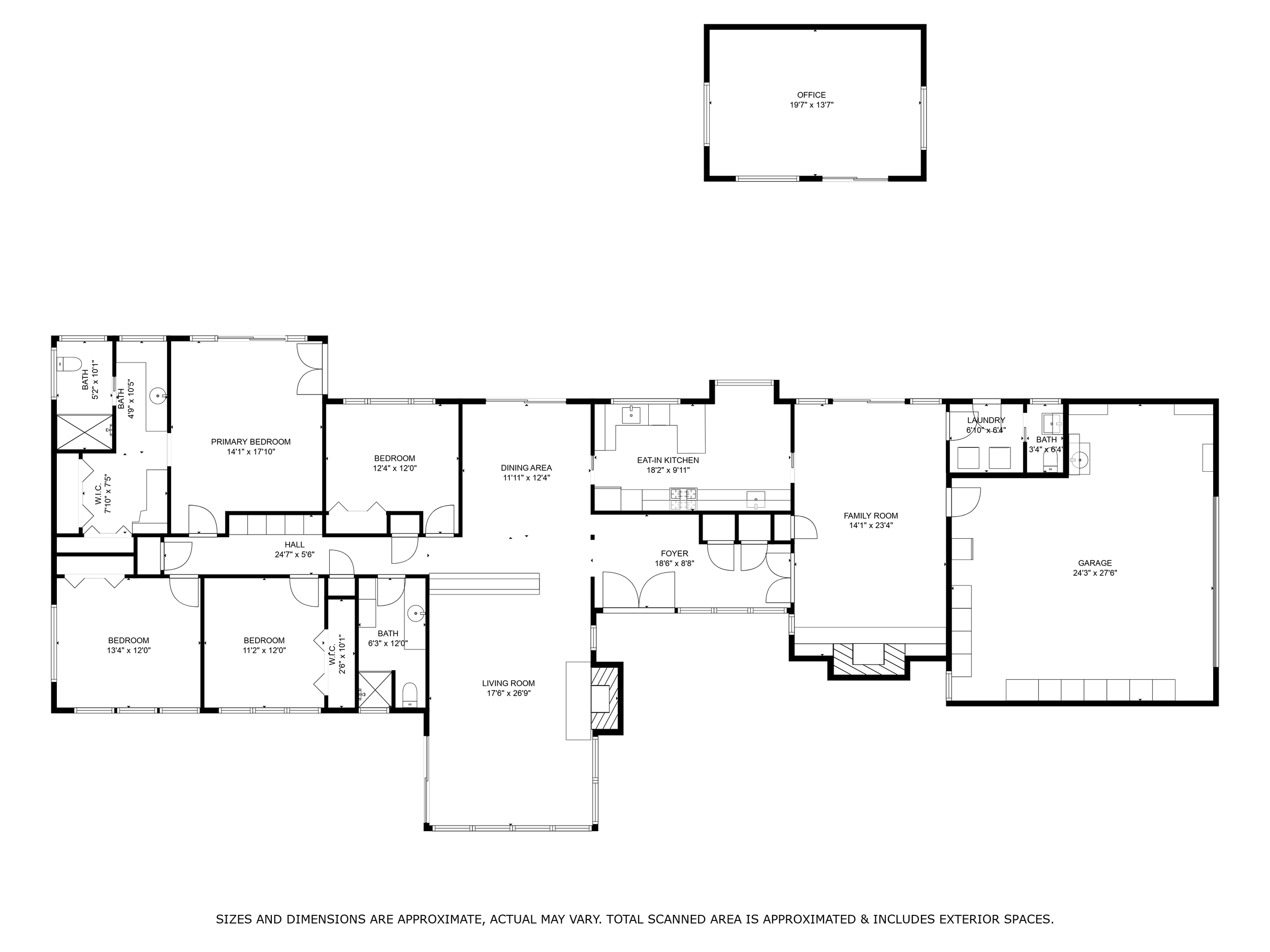 Enjoying a view of the backyard, the primary suite is drenched in natural light and boasts a spacious closet and dressing area, plus an ensuite bath. Three additional bedrooms in this wing have gorgeous outlooks of the yard and provide plenty of space. These bedrooms share a light-filled, updated hall bath with shower. Additionally, a well-appointed, separate outbuilding provides flexible options for guest room, au pair, gym, or home office.