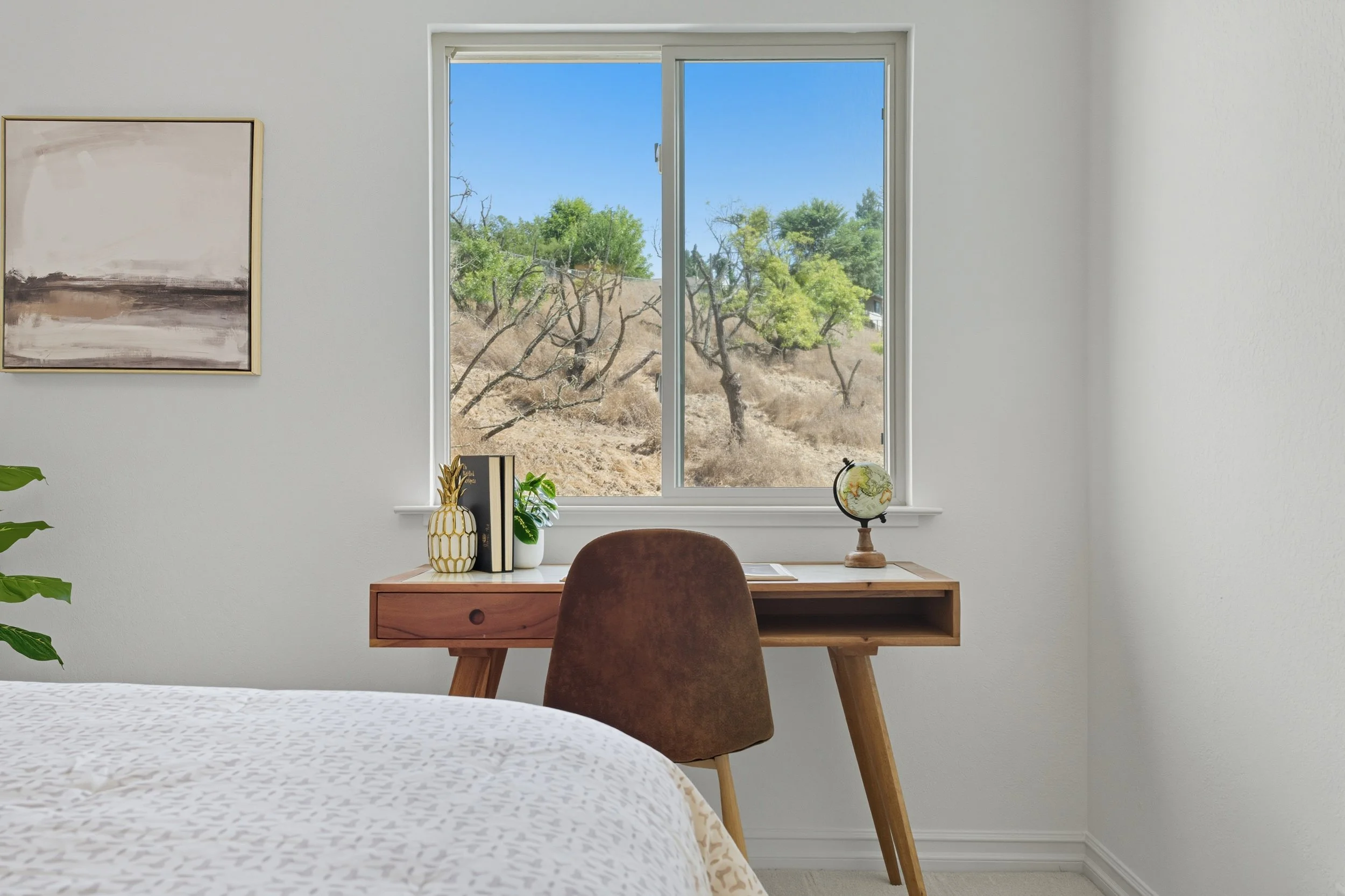 Upstairs, three bedrooms and two full baths provide a private space for relaxation. The primary suite is a true highlight, offering ample closet space, a peaceful view, and a serene ensuite bathroom. Two additional bedrooms and a gorgeous remodeled hall bath complete the upstairs, providing flexibility for family, guests, and/or a home office.